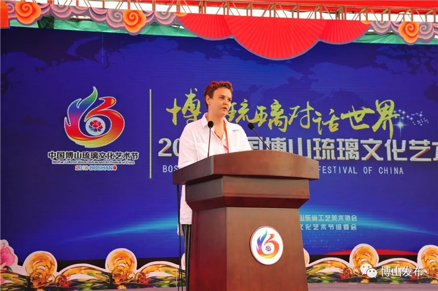 英國玻璃藝術家斐碧·克蕾爾·斯塔博斯在致辭中說,來到博山交流琉璃藝術雖然僅一周的時間,卻深深感到博山是一個有溫度的城市,琉璃之火溫暖了這個城市,博山人的熱情好客溫暖了每一位到此的客人,我們被這種熱情所感染。博山琉璃有著上千年的悠久歷史,在世界琉璃史上占有重要地位,有著巨大影響。博山琉璃以其特有的文化內涵和藝術魅力延綿傳承,希望能建立起博山琉璃藝術和世界琉璃藝術交流和對話的平臺,讓世界上更多的藝術家關注和了解博山琉璃,讓博山琉璃藝術在全世界發揚光大。